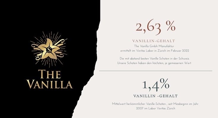 Der Mittelwert herkömmlicher Vanille-Schoten liegt, seit Messbeginn im Labor Veritas Zürich, bei ca. 1.4% Vanillingehalt.